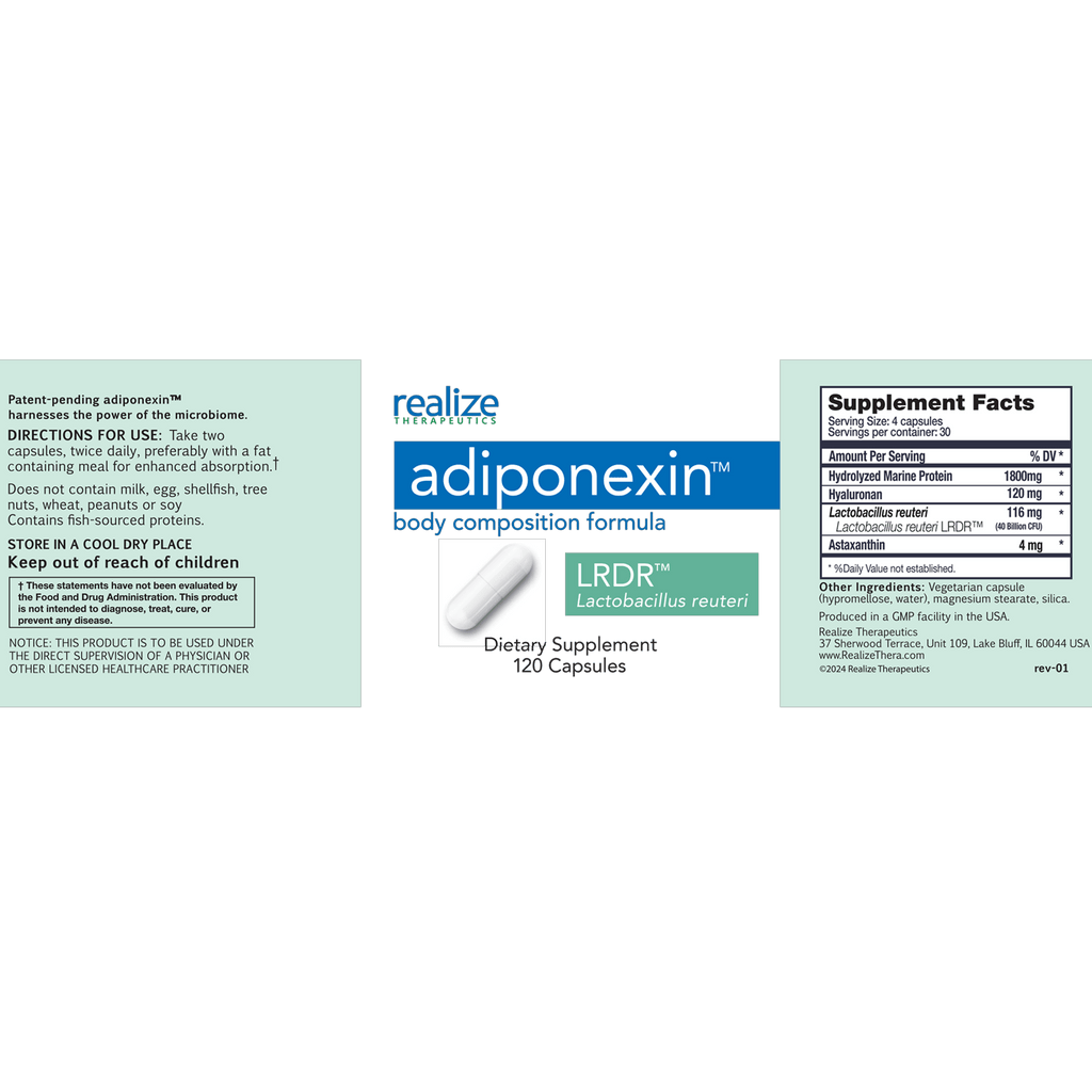 Adiponexin body composition formulation LRDR L. Reuteri with Hydorlized Marine Protein, Hyaloronan and Astaxanthin.