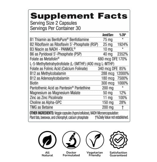 Advanced B-Complex provides naturally biologically active forms that are readily absorbed and primed to be used immediately throughout the body.