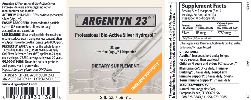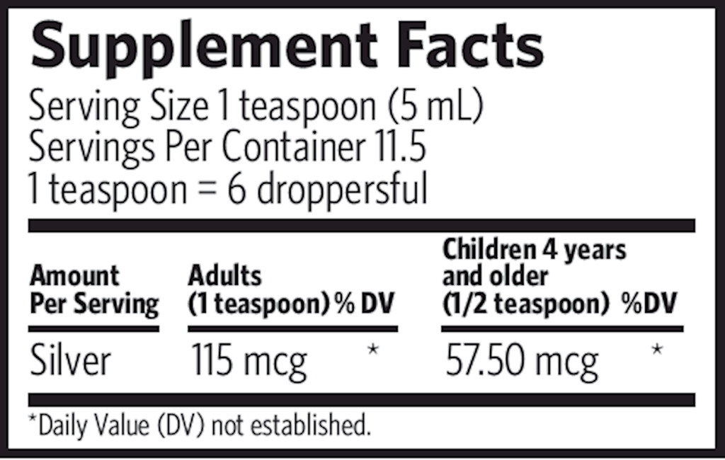 Argentyn 23® Bio-Active Silver Hydrosol™ is composed of only 99.999% pure silver and purified water meeting. It is a unique mixture of the most active and effective species of silver – positively charged silver ions and particles of an unprecedented size as small as 0.8 nm. With the smallest particles and highest charge ratio, it is the ultimate refinement of colloidal silver, offering your patients the most effective and safe dietary silver supplement available.*