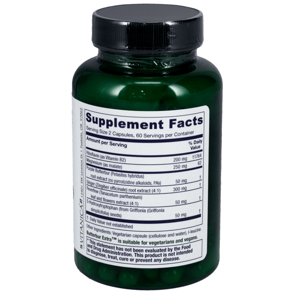 • Vitanica's Butterbur root extract, promotes a healthy inflammation response.* This extract is free of pyrrolizidine alkaloids, or PAs