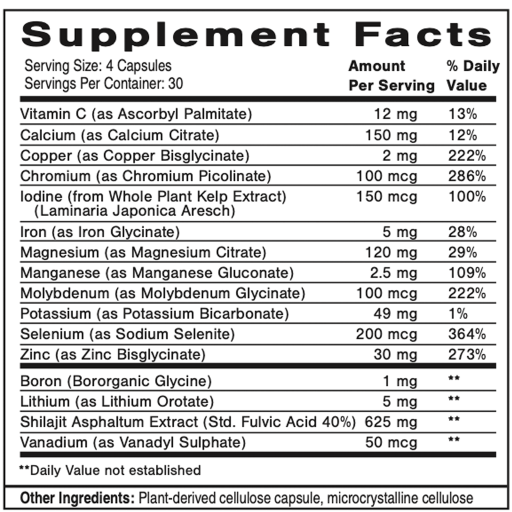 - Shilajit and Laminaria enhance the absorption of other minerals while supporting energy and vitality