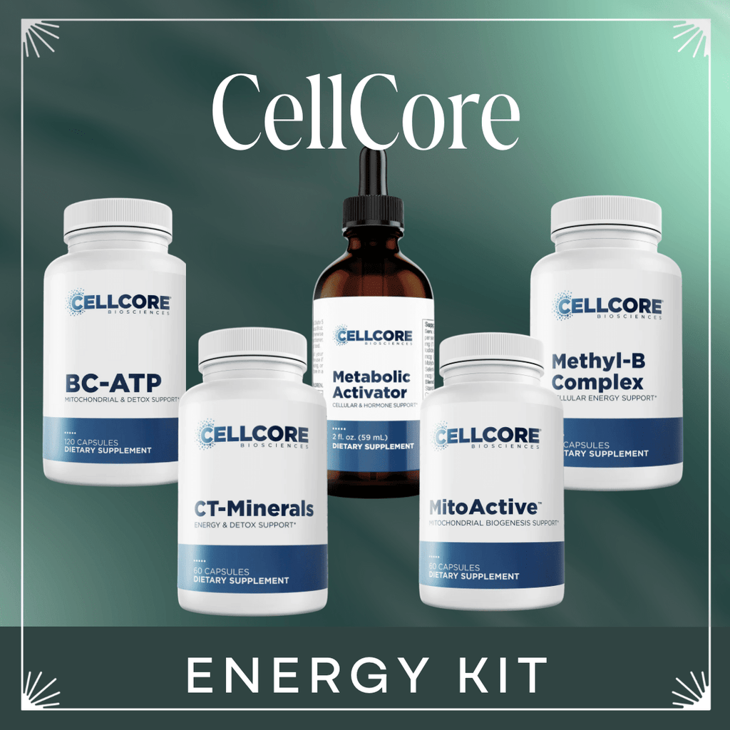 The Energy Boost Kit includes our top three supplements for supporting cellular health, cognitive function, and sustained mental and physical energy: BC-ATP, CT-Minerals, MitoActive, Methyl-B Complex, and Metabolic Activator.* By supporting mitochondrial health, the Energy Boost Kit not only encourages enhanced energy levels, but supports the body in all of its processes — including detoxification, digestion, hormonal balance, and immunity.*