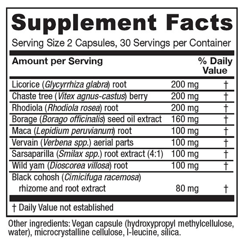 • Botanicals promoting regular ovulation and overall hormone balance support: Chaste tree berry, Licorice, Black cohosh*