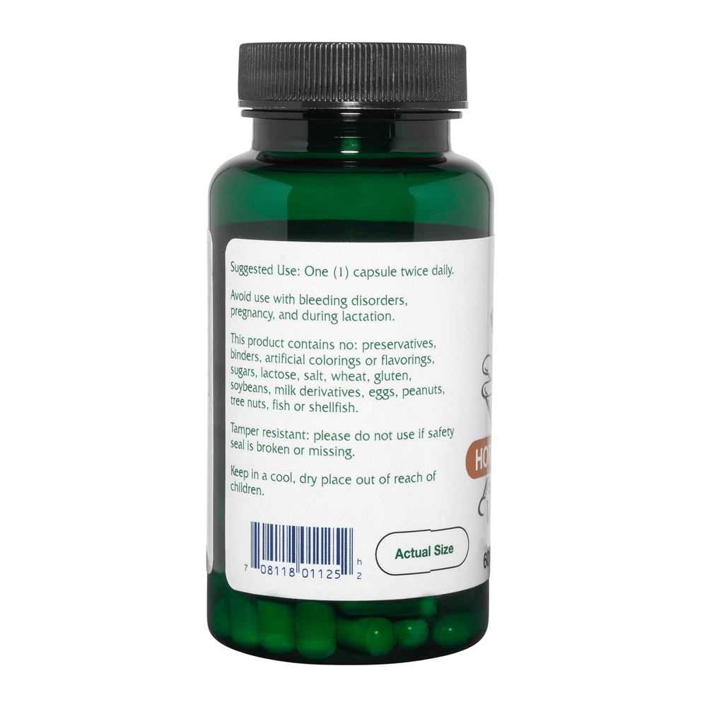 • Saponins – particularly aescin, flavonoids and lipids – make up Horse chestnut’s active constituents; each capsule contains a standardized extract featuring 20% aescin.