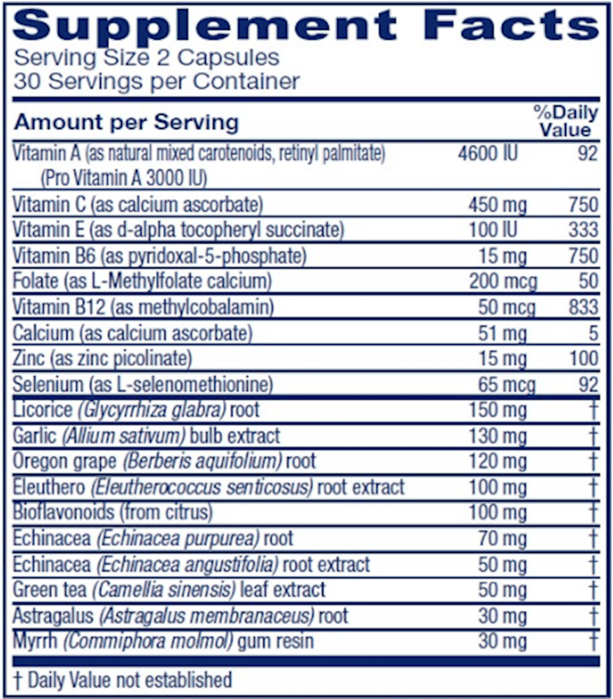 For overall immune support, this robust formula combines scientifically based and traditionally used herbal and nutrient ingredients to promote maintenance of good health.*