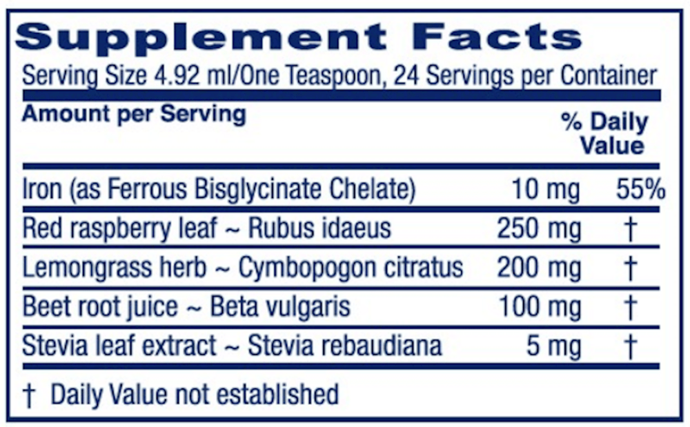 Maintains healthy iron levels with easy to use, delicious blackberry taste; Gentle on the system, natural iron supplementation.*