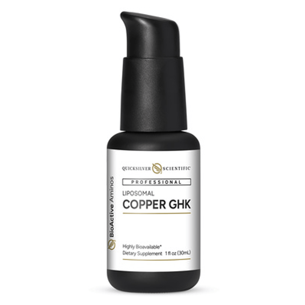 Copper GHK is an oral liposomal copper tripeptide complex, GHK-Cu, designed to replenish endogenous GHK-Cu to more youthful levels. GHK-Cu is a naturally occurring peptide that forms an ionic complex with copper in human plasma. As we age, normal levels of GHK-Cu decrease. It is thought that lower levels influence impaired wound healing and immune dysfunction among other age-related declines. Replenishing physiological levels of GHK-Cu has been shown to offer powerful regenerative and reparative longevity actions including collagen and elastin synthesis, DNA repair, stem cell renewal processes, restoring an appropriate inflammatory response, neurological and cardiovascular protection, and the reset of epigenetic programming.