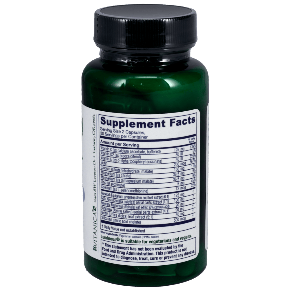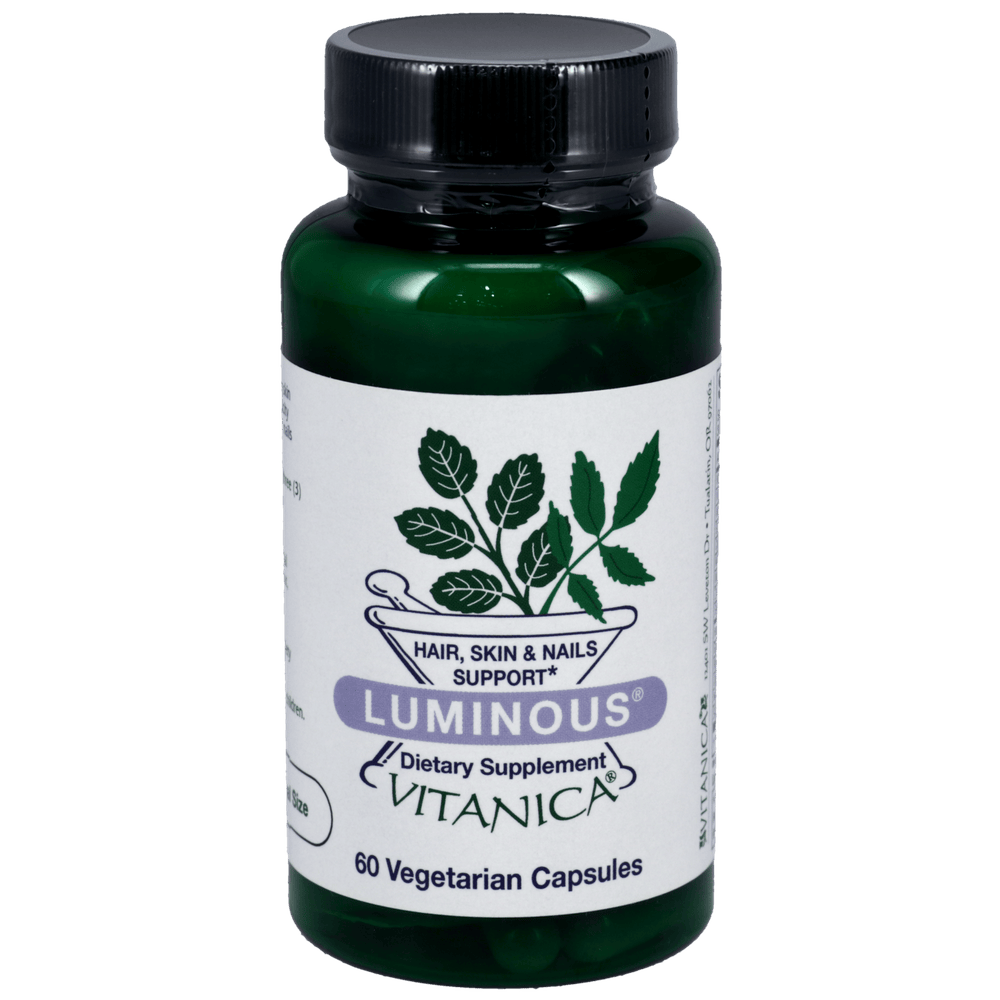 Luminous is a comprehensive hair, skin and nails support formula. It provides the minerals, and nutrient-rich botanicals supportive for collagen and circulation for healthy, glowing skin and hair.*