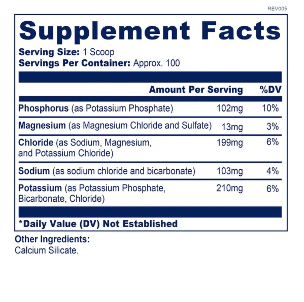 Rich in phosphorus, magnesium, chloride, and potassium*Closely matches the natural mineral and salt balance found in the body's extracellular matrix *Supports normalized hydration and pH levels*Supports cell membrane stability, skeletal and muscular development, hormone, and neurotransmitter balance*Free from artificial flavor and colorsNo added sugars