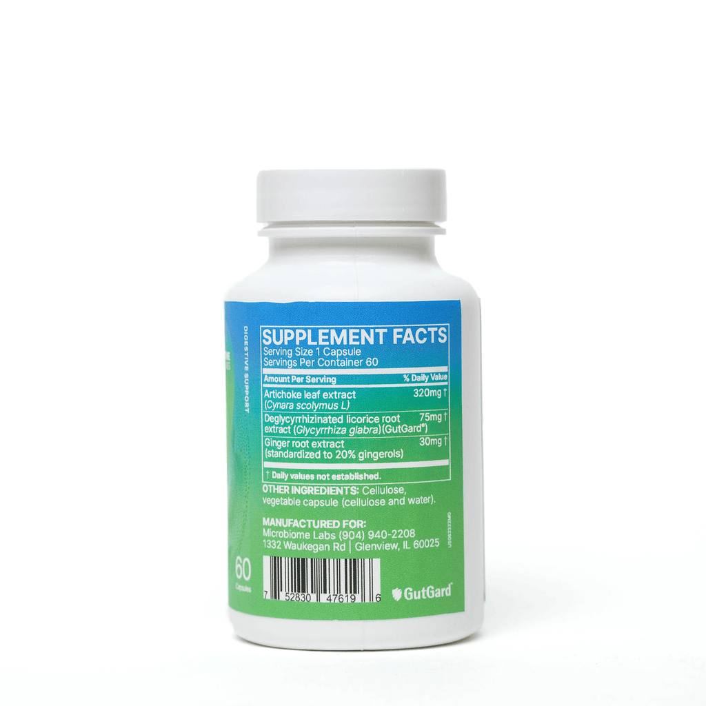 Ginger (Zinziber officinalis) has been used as a digestive aid in Eastern medicine for generations. Studies have demonstrated that ginger accelerates gastric emptying and can relieve occasional bouts of nausea and vomiting.12-13 Gingerols and shogaols, the active polyphenolic compounds in ginger, appear to be responsible for such effects by weakly inhibiting cholinergic M3 and serotonergic 5-HT3 receptors, whose temporary dysfunction is responsible for nausea, vomiting, and hypomotility.14-15 Ginger extracts with a higher gingerol content (20-30% gingerols) are stronger and more effective at relieving digestive discomforts. In 2015, an Italian study of 126 patients found that the daily combination of 40 mg of ginger extracts (25-30% gingerols) with 200 mg of artichoke leaf extracts reduced the severity and frequency of common digestive symptoms like nausea, bloating, early satiety, and abdominal pain 17% more effectively than just artichoke leaf extract alone.16 While most ginger extracts only contain 5% gingerols, MegaGuardTM contains 60 mg of high potency ginger root extract (20% gingerols) for maximum strength.