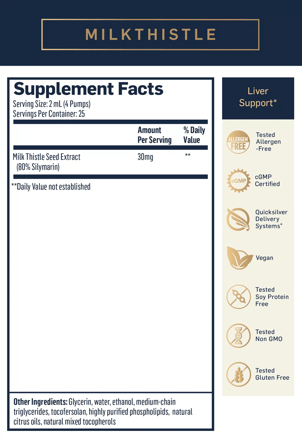 - Each 2 mL delivers 30 mg of milk thistle extract (highly standardized to 80% Silymarin).