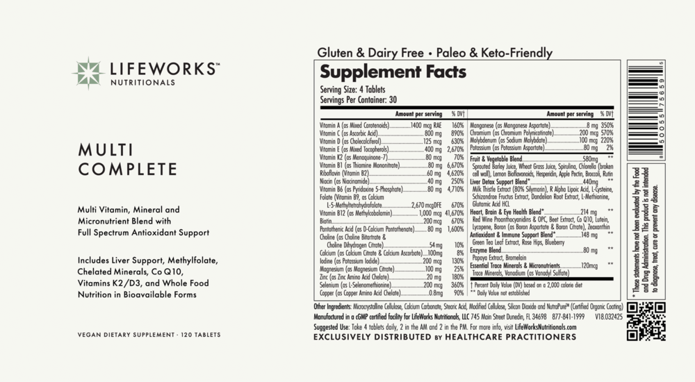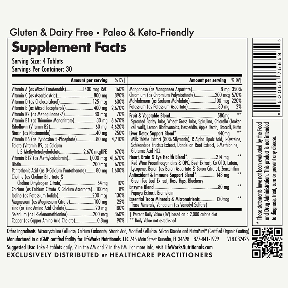 Sourced from the best whole-food ingredients and using the active forms of top vitamins, Multi Complete is optimized for maximum bioavailability and maximum effect. 20 whole-food fruit and vegetable concentrates* Biologically relevant doses of vitamins and minerals that you won’t find in other multivitamins, designed for maximum health impact.*