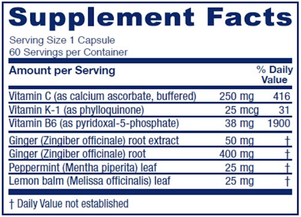 Supports the relief of occasional and pregnancy-related nausea with science based nutrients and historically used herbs.*