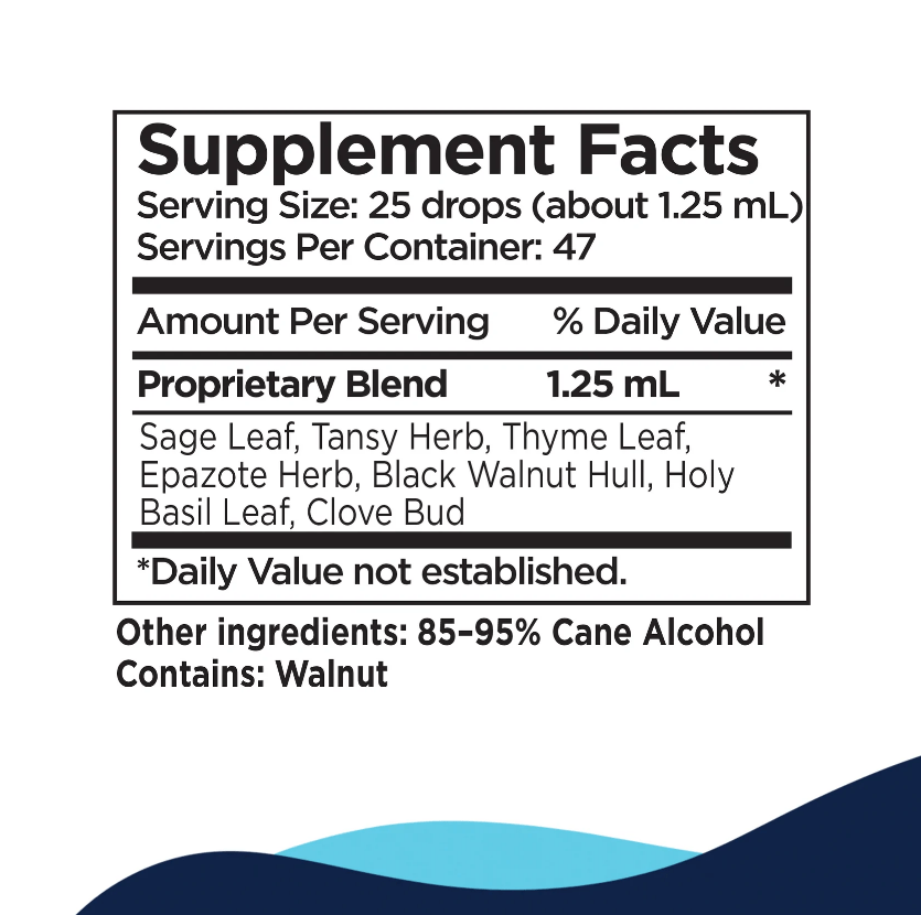 This heroic herb combination hits hard on many pathogens but is especially geared for Strongyloides, liver flukes, Clostridium, and Blastocystis hominis.
