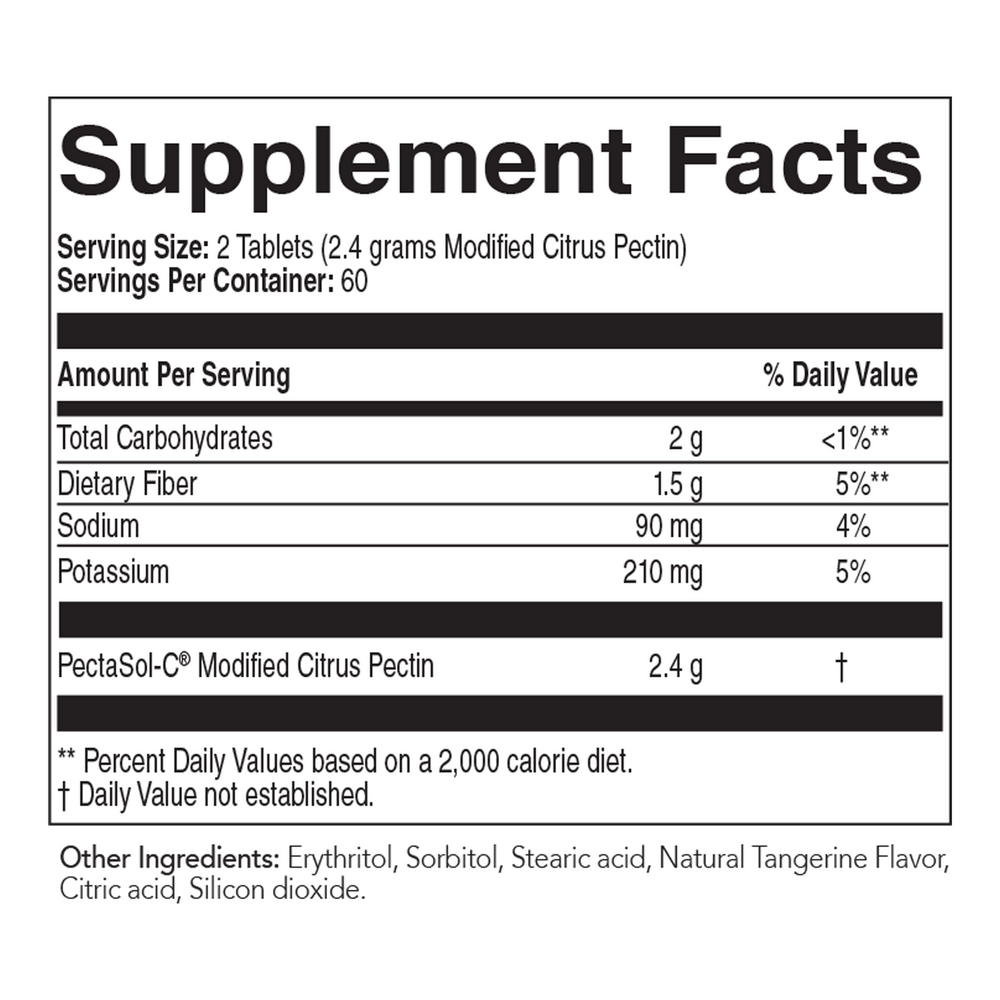 Serving Size: 2 Tablets (2.4g Modifed Citrus Pectin)