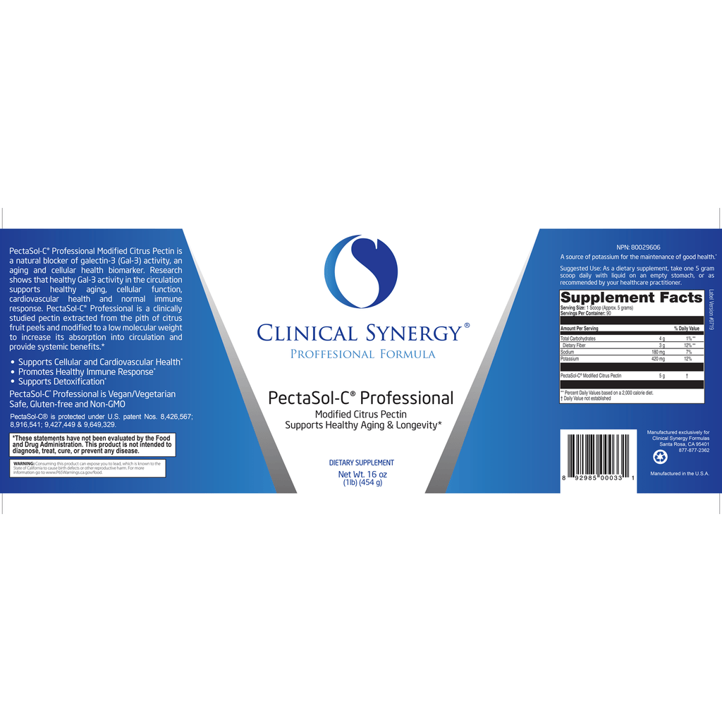 PectaSol-C® Professional is a natural inhibitor of galectin-3. Research shows that maintaining healthy galectin-3 levels supports healthy aging, cellular function, cardiovascular health and normal immune response.*