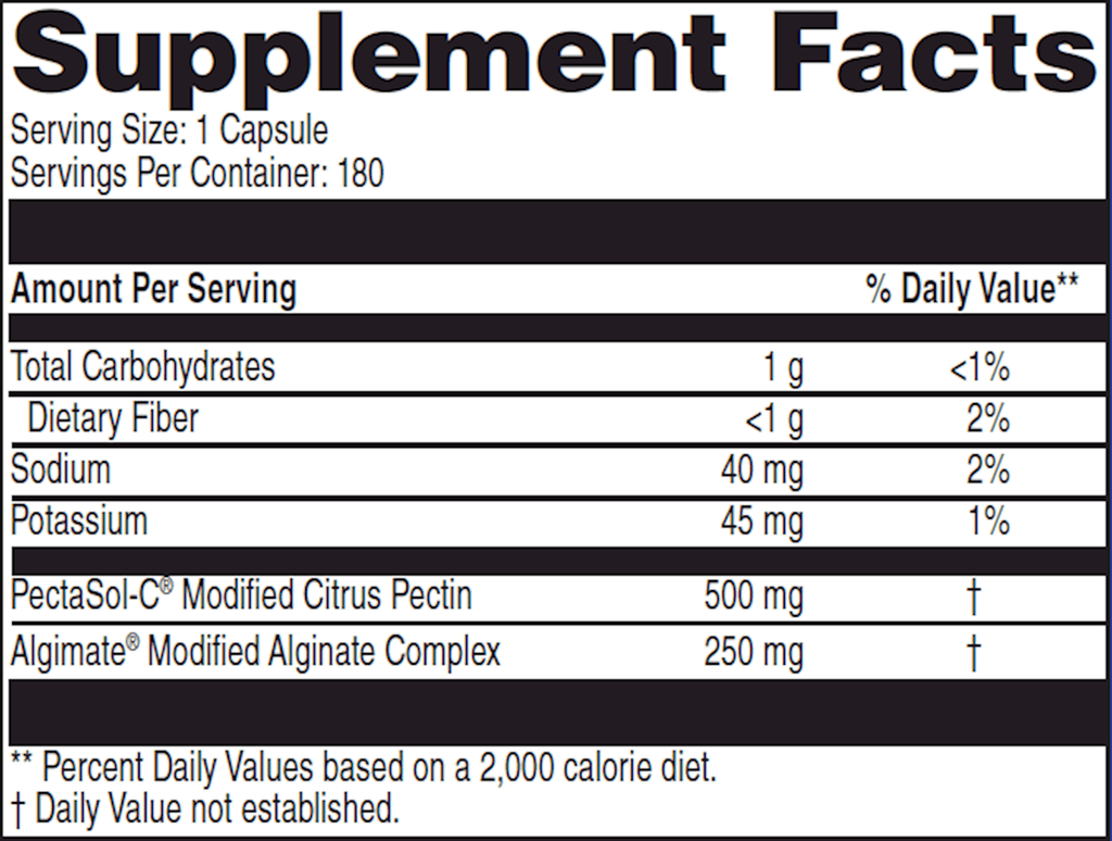 PectaSol® Metal Detox provides a gentle, natural detoxification and helps lower body burden of environmental toxins. PectaSol® Metal Detox combines the desired properties of PectaSol-C® Modified Citrus Pectin purified from the pith of citrus fruit peels and Algimate®, purified from the kelp seaweed, to selectively bind to environmental pollutants for safe toxin cleansing.*