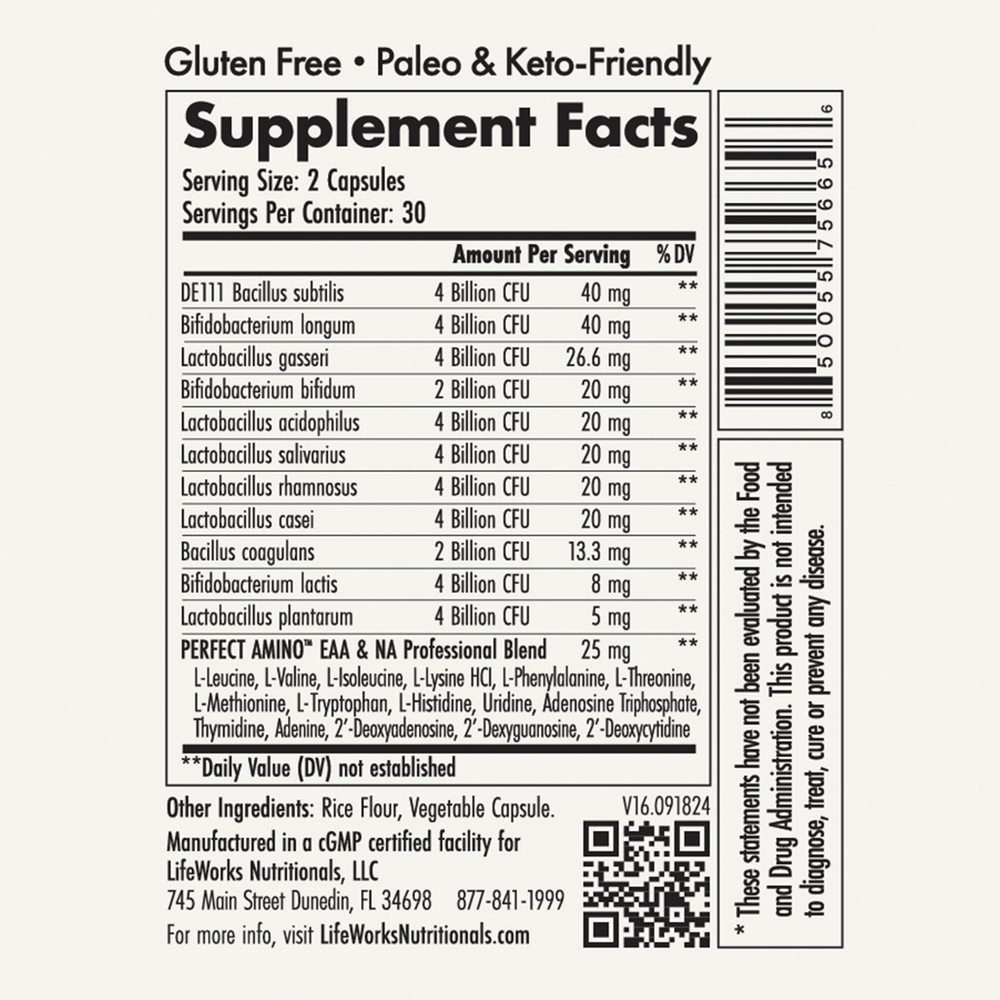 Enhanced with Essential Amino! Beneficial bacteria living in your colon thrive by consuming essential amino acids as their food source. By adding EAAs into the digestive resistant capsule with the probiotics we ensure this important ""food"" makes it all the way to these bacteria to give you the very best results.*