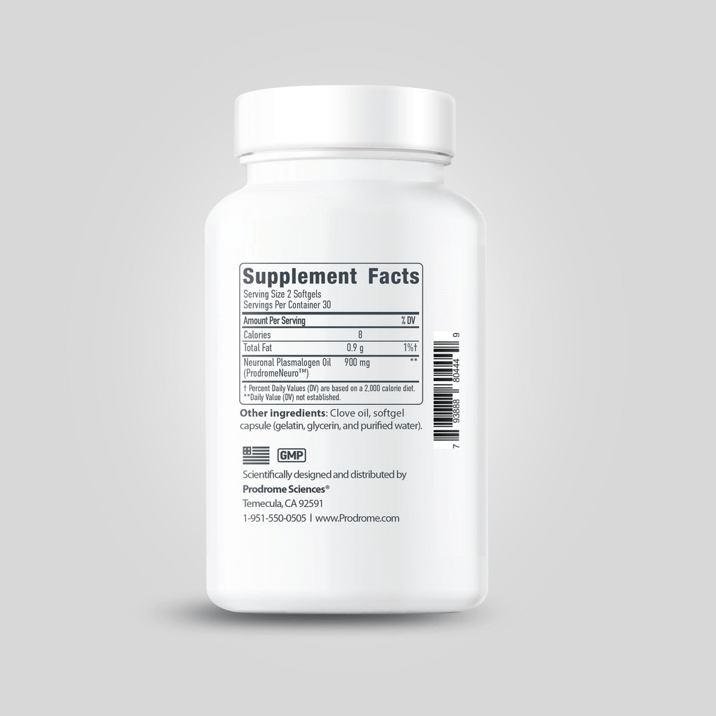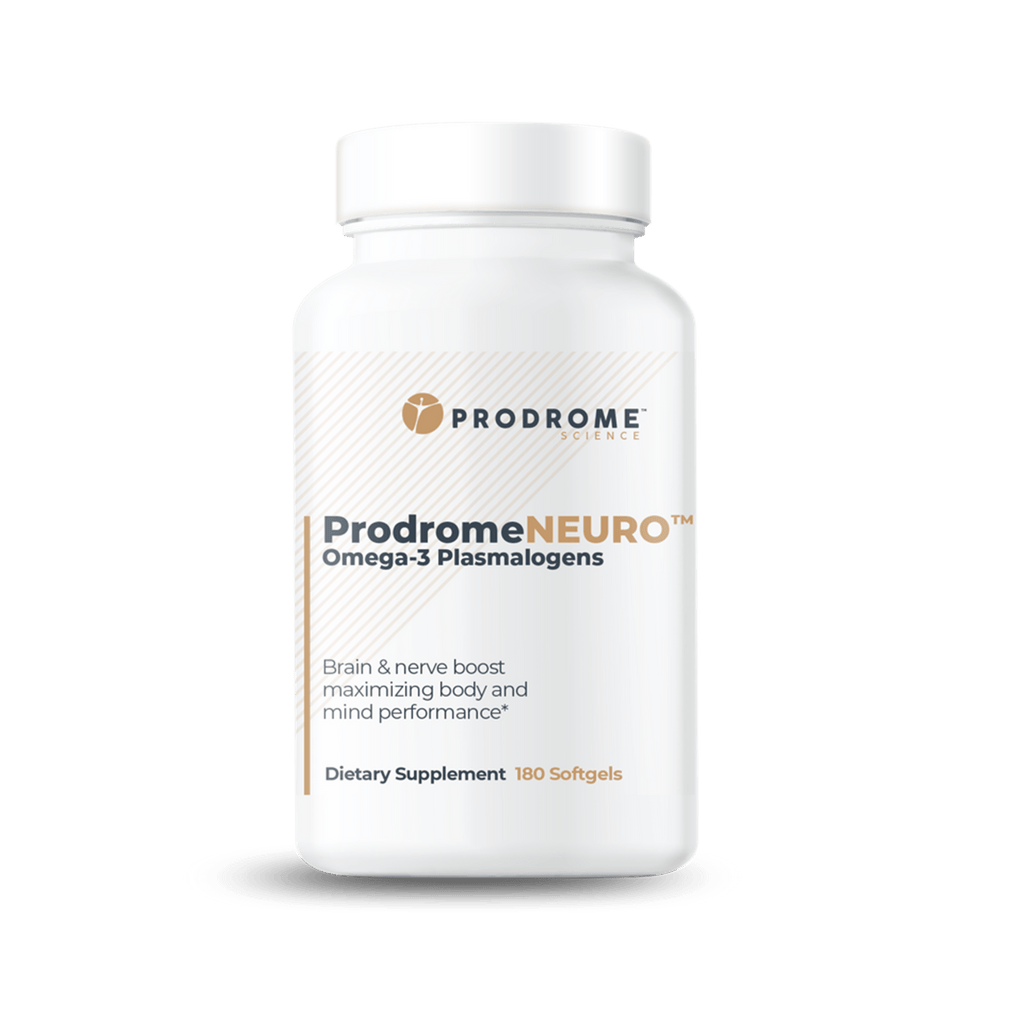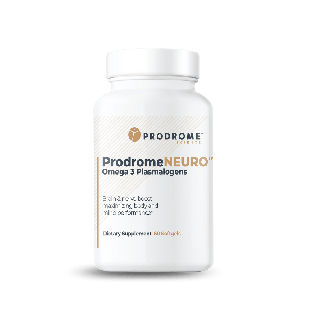 ProdromeNEURO™ is an omega-3 (DHA) plasmalogen precursor designed to restore and optimize cellular functions that require high levels of DHA plasmalogens, such as brain gray matter, neuron and neuromuscular synaptic function, reverse cholesterol transport, and maintaining low brain amyloid levels.