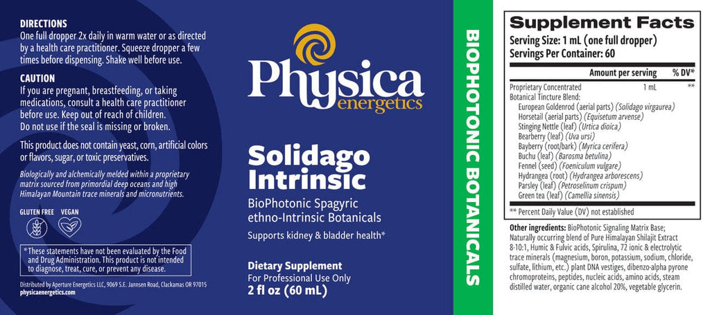 Solidago Intrinsic is an exceptional BioPhotonic Spagyric botanical formula that may provide strong support for the kidney and bladder, assisting with decongestion and repairing xenobiotic-laden tissues.*