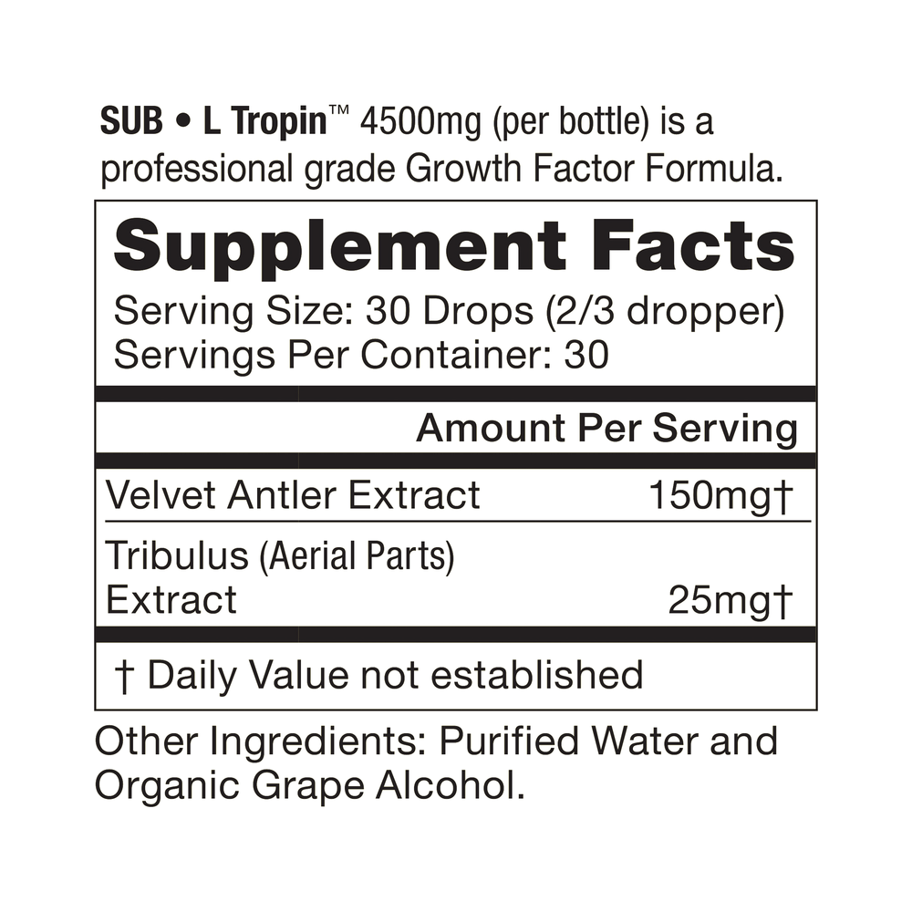 Dynamic ingredients helps support the body’s natural sex hormone production. Sub• L Tropin also assists in raising glutathione levels, helps improve immune response, cellular repair and enhanced protein absorption.