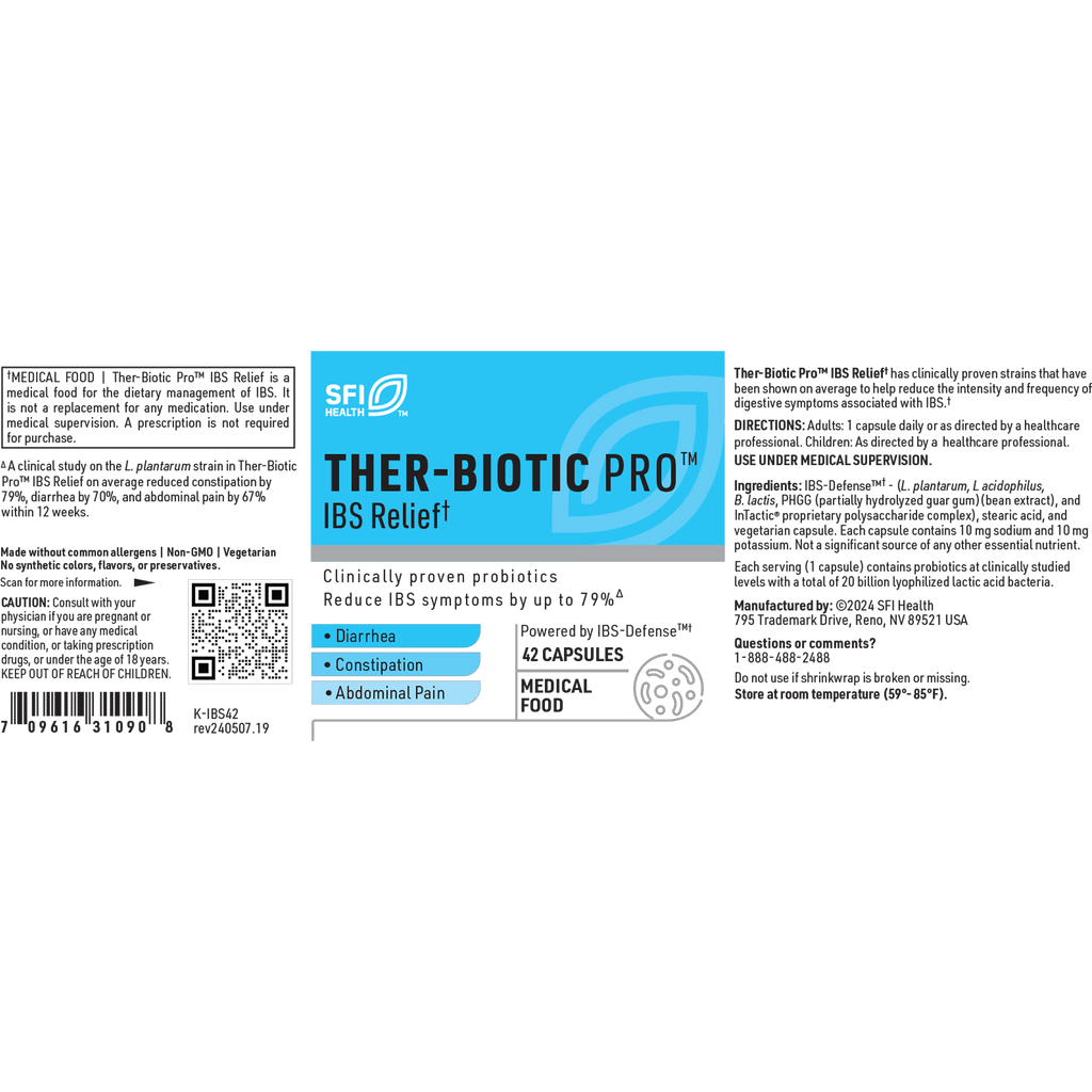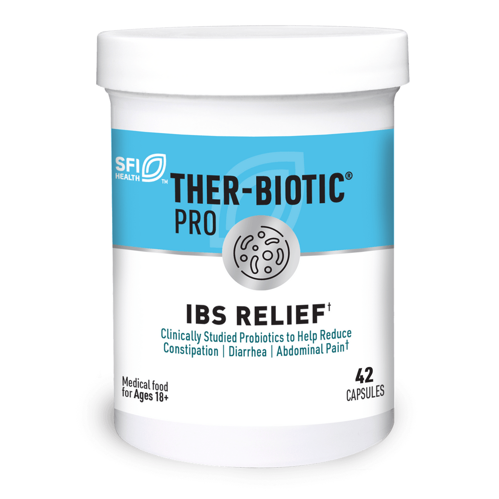 Ther-Biotic Pro™ IBS Relief is a probiotic medical food powered by IBS-Defense™ a unique combination of probiotic strains + a low FODMAP prebiotic protected by InTactic® Technology. * IBS-Defense™ probiotics have been clinically proven to reduce the severity and frequency of IBS symptoms, including constipation, diarrhea, abdominal pain, and flatulence.* Clinical studies show that a root cause of IBS symptoms such as diarrhea, constipation and abdominal pain is a breakdown in the gut barrier (leaky gut), which is caused in part by an imbalance of beneficial gut bacteria. Ther-Biotic Pro IBS Relief with IBS Defense is a medical food for the dietary management of IBS that helps strengthen the gut barrier by rebuilding these beneficial bacteria to reduce IBS symptoms.*